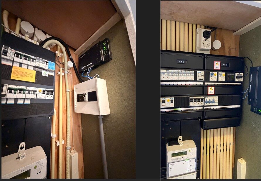 Ombouw van 1-fase naar 3-fasen groepenkast en plaatsing EV-lader.